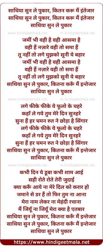 Lyrics of Sathiya Sun Le Pukar - साथिया सुन ले पुकार