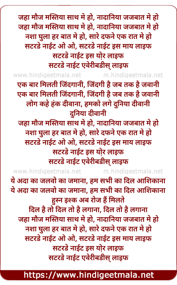 Lyrics of Saturday Nightt - सैटरडे नाईट
