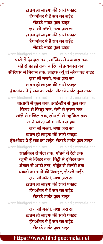 Poetic Translation - Lyrics of Saturday Night Full Tight - सैटरडे नाईट फुल टाइट