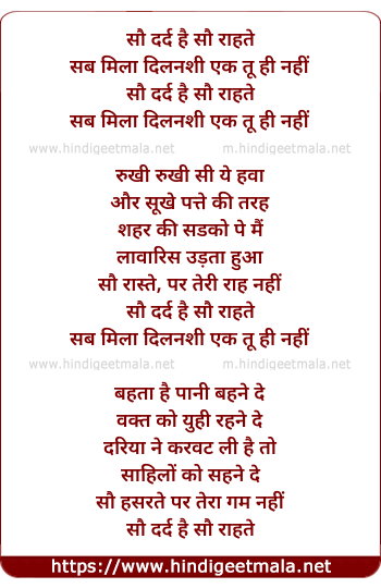 Lyrics of Sau Dard Hai Sau Raahate - सौ दर्द है सौ राहते