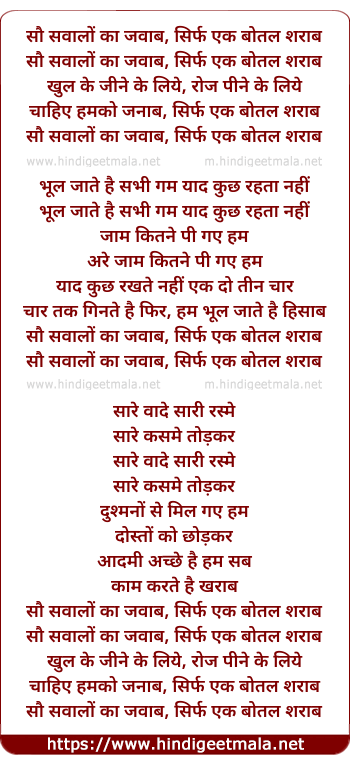 sau sawalo ka jawab, sirf ek botal sharab