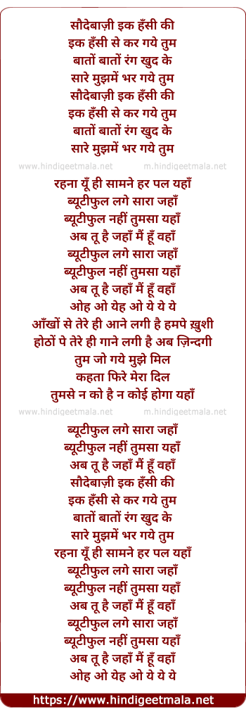 Lyrics of Saudebaazi - सौदेबाज़ी
