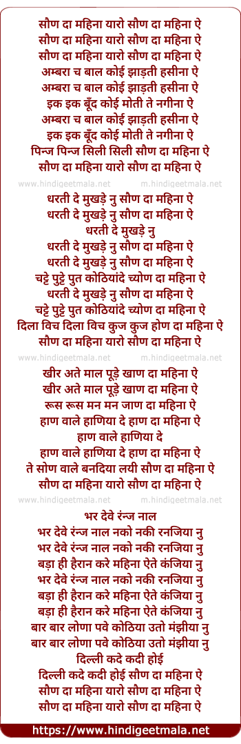 Lyrics of Saun Daa Mahina Yaro - सौण दा महिना यारो सौण दा महिना ऐ