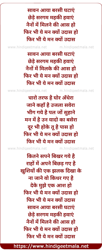 Lyrics of Sawan Aaya Barsi Ghataye - सावन आया बरसी घटाएं