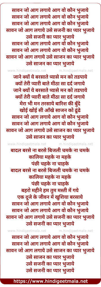 Lyrics of Sawan Jo Aag Lagaye - सावन जो आग लगाये
