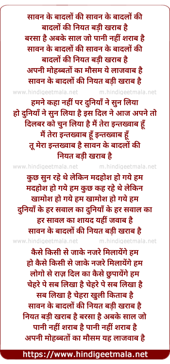 Lyrics of Sawan Ke Badalo Ki Niyat - सावन के बादलों की नियत