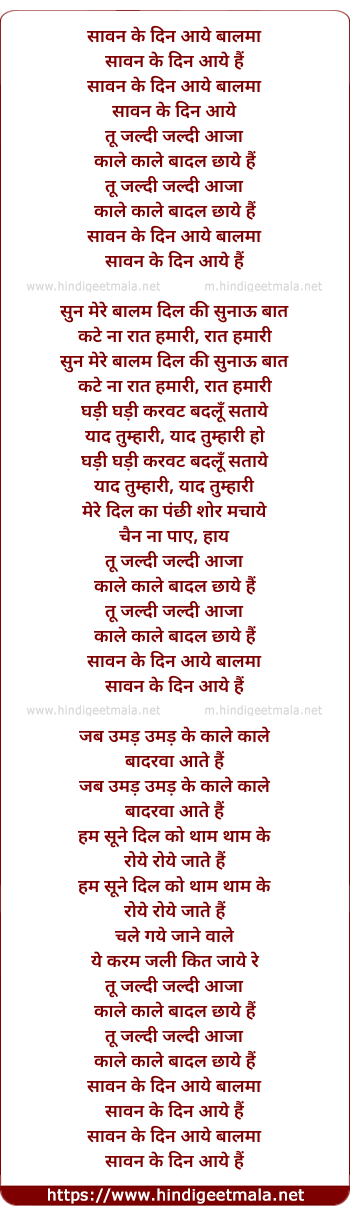 Lyrics of Sawan Ke Din Aaye Balma - सावन के दिन आये बालमा