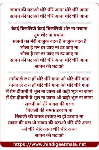 Lyrics of Sawan Ki Ghatao Dhire Dhire Aana - सावन की घटाओ धीरे धीरे आना