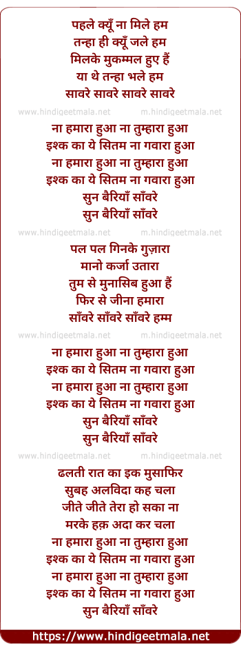 Lyrics of Saware - साँवरे