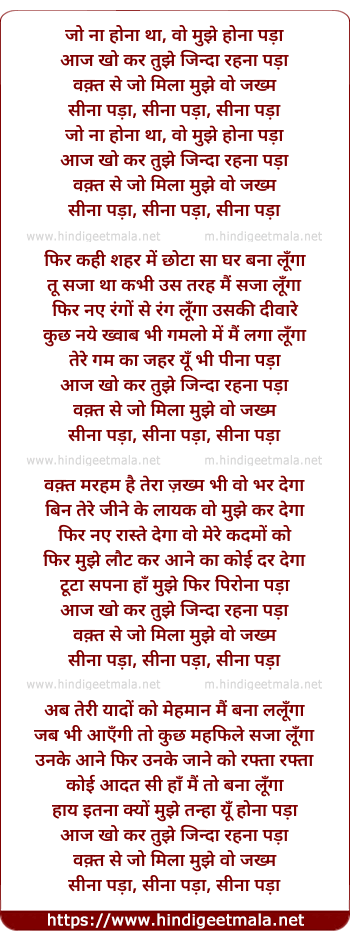 Waqt tushe jo mila mujhe wo zaqm.. seena pada... Thanks for good song from