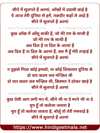 Lyrics of Seene Mein Sulagte Hai Armaan - सीने में सुलगते हैं अरमां
