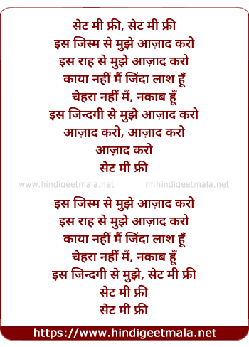 Poetic Translation - Lyrics of Set Me Free - सेट मी फ्री