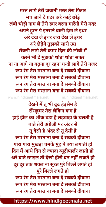 Poetic Translation - Lyrics of Sexy Lage Teri Kamar - सेक्सी लागे तेरी कमर