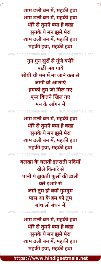 shaam dhali ban me, mehki hawa