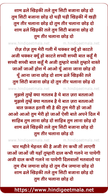 Lyrics of Shaam Dhale Khidaki Tale Tum Siti Bajaanaa Chhod Do - शाम ढले खिड़की तले तुम सिटी बजाना छोड़ दो