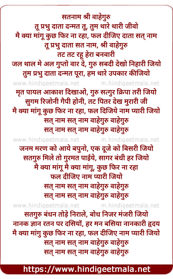 Lyrics of Satnam Shri Waheguru - सतनाम श्री वाहेगुरु