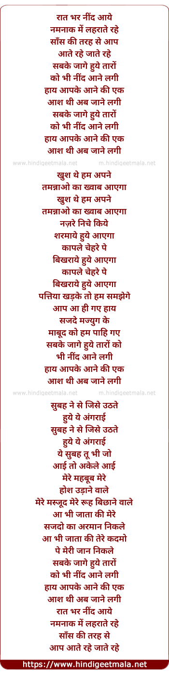 Lyrics of Shabke Jaage Huye Taaroan Ko (Female) - रात भर नींद आये