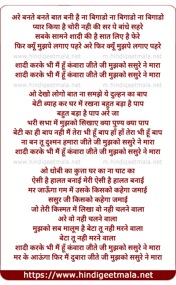Lyrics of Shadi Karke Bhi Mai Hu Kawaanra - शादी करके भी मैं हूँ कंवारा