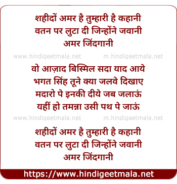 Lyrics of Shahido Amar Hai Tumhari Kahani - शहीदों अमर है तुम्हारी कहानी