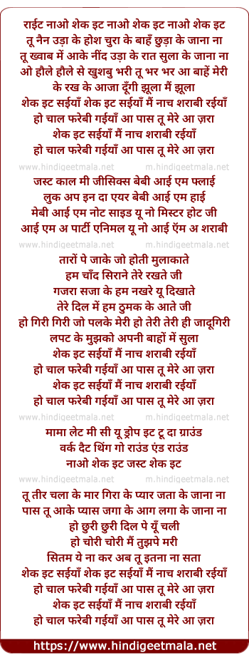 shake it saiyyan main naach sharabi rayiaan