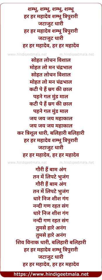 Lyrics of Shambhu Har Har Mahaadev - शम्भू हर हर महादेव