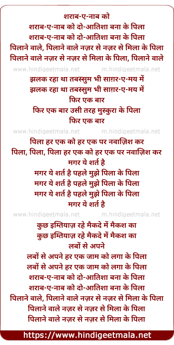 Lyrics of Sharaab E Naab Ko Do Aatishaa Banaa Ke Pilaa - शराब-ए-नाब को