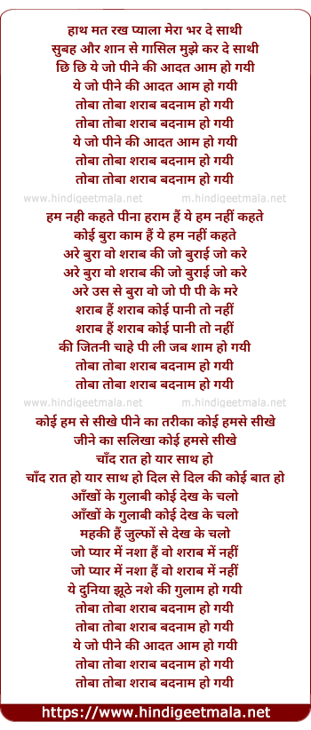 Lyrics of Sharab Badnam Ho Gayi - शराब बदनाम हो गयी