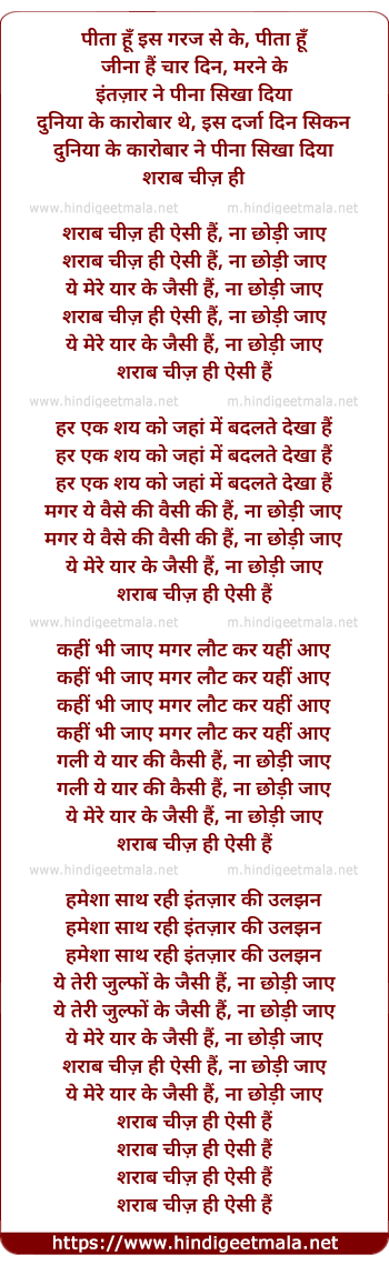 Lyrics of Sharab Cheej Hee Aisi - पीता हूँ इस गरज से के, पीता हूँ