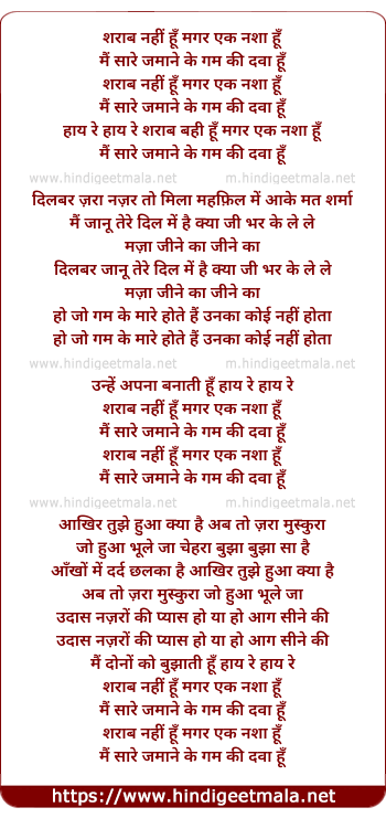 Lyrics of Sharab Nahi Hu Magar Ek Nasha Hu - शराब नहीं हूँ मगर एक नशा हूँ