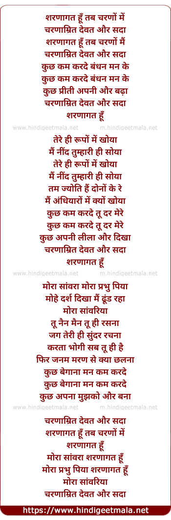 Lyrics of Sharnaagat - शरणागत हूँ तब चरणों में
