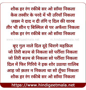 Lyrics of Shauq Har Rang - शौक हर रंग रकीबे सर ओ साँमा निकला
