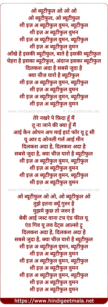 Lyrics of She Is A Beautiful Woman - शी इज़ अ ब्यूटीफुल वुमन