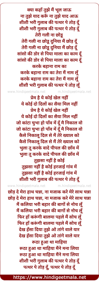 shishi bhari gulab ki patthar pe tod du