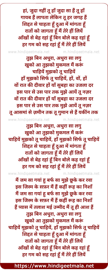 chahiye mujhko tu chahiye, haan mujhe sirf tu chahiye