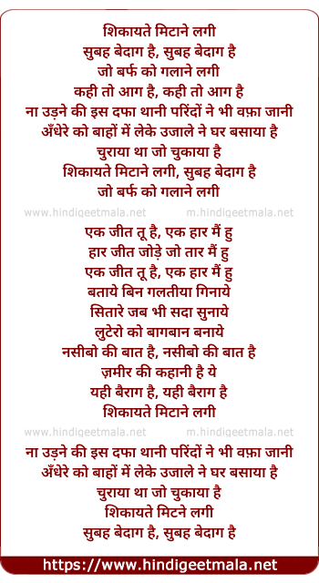 Poetic Translation - Lyrics of Shikayate Mitane Lagi - शिकायते मिटाने लगी