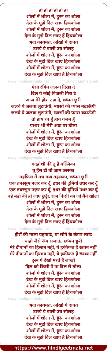 Lyrics of Sholo Me Shola Mai - शोलों में शोला मैं