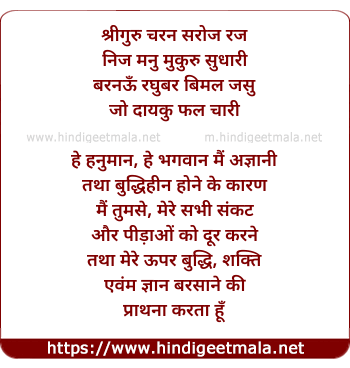 Film CastMahipal, Anita GuhaSingerGeeta Dutt, Manna Dey, Mohammed Rafi, Sudha MalhotraLyricistDirectorAdarshProducerBasantExternal LinksHanuman Chalisa at IMDB YouTubeHanuman Chalisa at YT