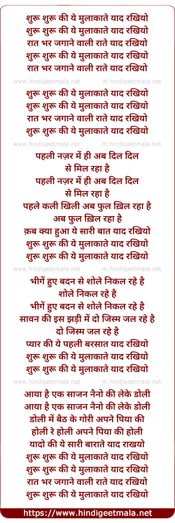 Lyrics of Shuru Shuru Ki Ye Mulaqate - शुरू शुरू की ये मुलाकाते