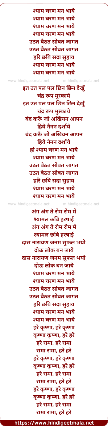 Lyrics of Shyam Charan Man Bhaaye - श्याम चरण मन भाये