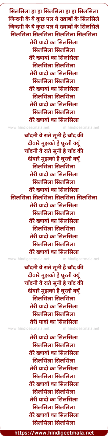 Lyrics of Silsila (Alisha Chinai) - सिलसिला हा हा सिलसिला हा हा सिलसिला