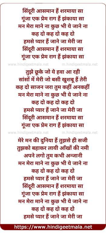 Lyrics of Sinduree Aasman Hain Sharmaya Sa - सिंदूरी आसमान हैं शरमाया सा