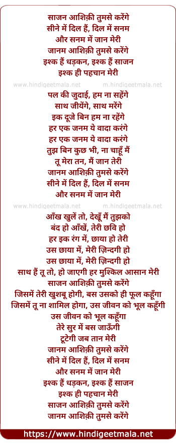 Lyrics of Sine Me Dil Hai Dil Me Sanam - सिने में दिल है दिल में सनम