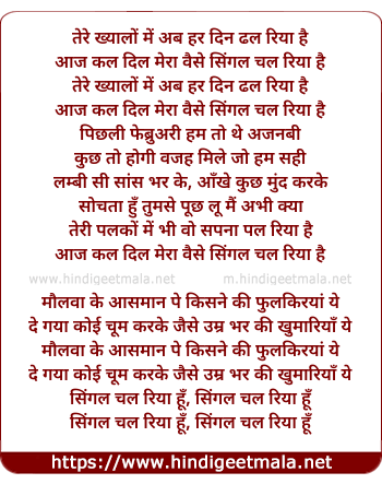 Lyrics of Single Chal Riya Hoon (Reprise) - तेरे ख्यालों में अब हर दिन ढल रिया है