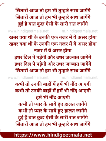 Lyrics of Sitaro Aaj To Hum Bhi Tumhare Sath - सितारों आज तो हम भी तुम्हारे साथ