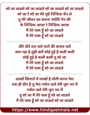 Poetic Translation - Lyrics of So Ja Laadle So Ja Laadle - सो जा लाडले सो जा लाडले