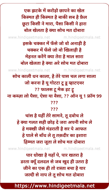 Lyrics of Soch Mat Dobaara - सोच मत दोबारा