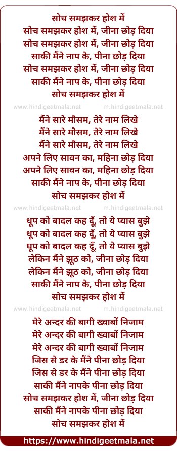 Lyrics of Soch Samajhkar Hosh Me - सोच समझकर होश में