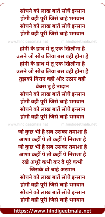 Lyrics of Sochane Ko Laakh Baatein Soche Insaan - सोचने को लाख बातें सोचे इन्सान