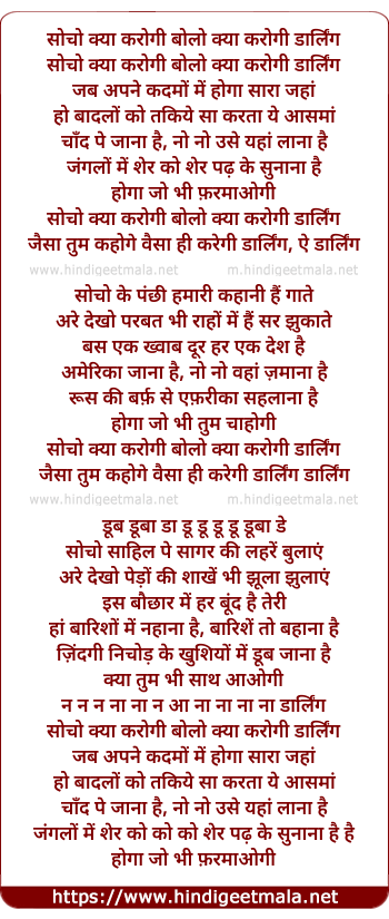 Lyrics of Socho Kyaa Karogi Bolo Kyaa Karogi Darling - सोचो क्या करोगी बोलो क्या करोगी डार्लिंग