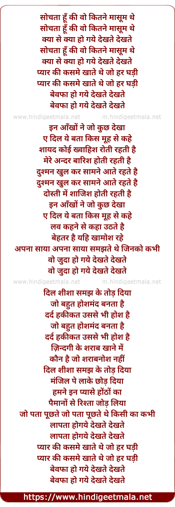 Lyrics of Sochta Hu Ke Vo - सोचता हूँ की वो कितने मासूम थे